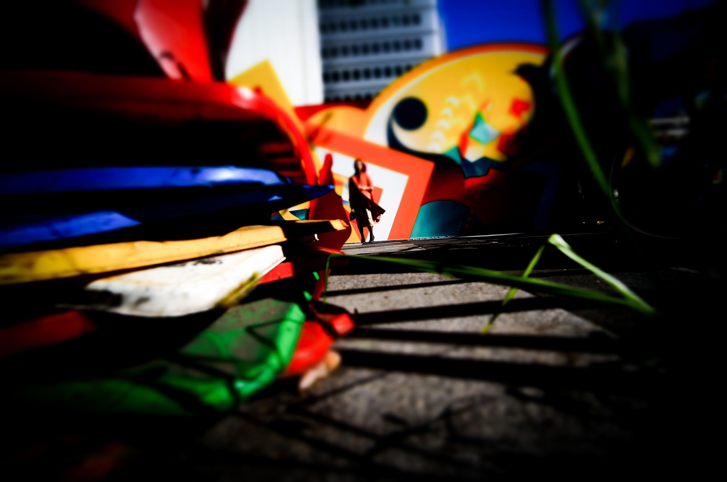 青いラインのトラックが気になっていたところに、正面から青いシャツの運転手がやってきた。青い線に近づいてシャッターを切ってみると流星っぽくなり、お気に入りの1枚になった。超広角のマニュアルフォーカスのレンズは距離計を30cm以上にしてF8当たりにしていればピントを気にせず瞬間を狙えるのでシャッターチャンスにめっぽう強い。なので超広角レンズを装着した小型カメラをサブ機として持ち歩くことをオススメする。