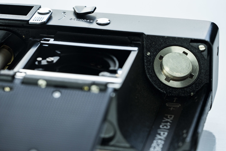「ローライ35」で使用する電池は水銀電池「PX625」で、現在は生産中止になっている電池です。使用するにはサイズ互換のアルカリ電池や変換アダプターなどを使用します。その際には電圧1.35Vのモノを使用します。1.5Vのモノを使用すると露出計の精度は正しく出ません。