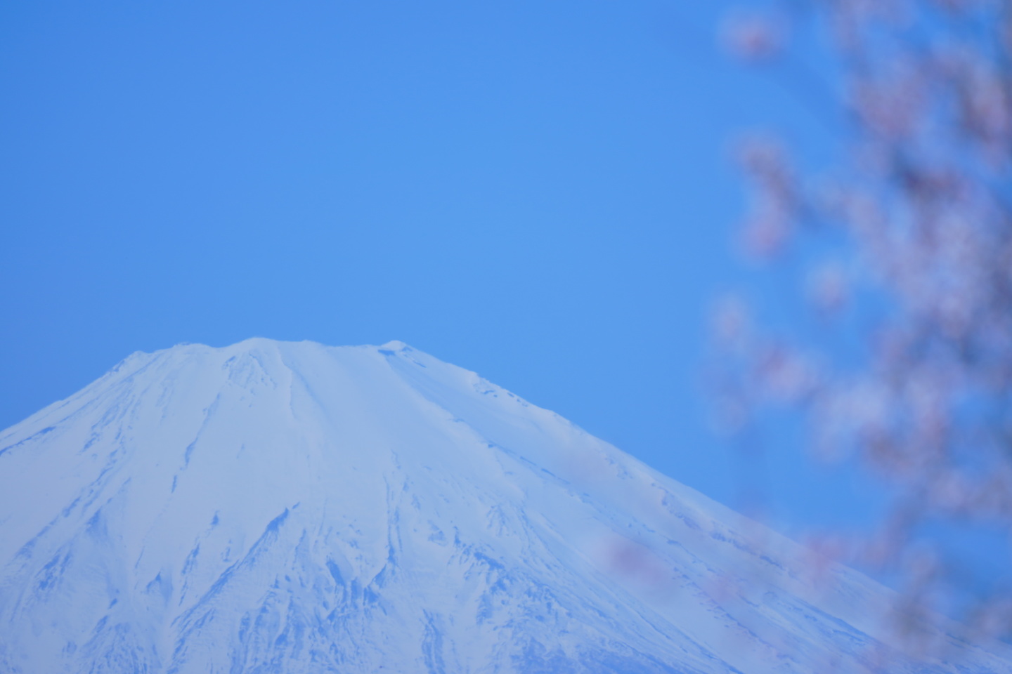 住宅地で電線がたくさんあったのだけれど、桜から少し離れて遠くの富士山と合わせて撮影。圧縮することにより、電線を入れずに撮影できた。